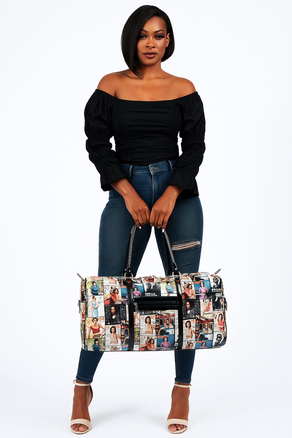 Michelle Obama Multicolor Magazine Print Vegan Leather Duffle Bag